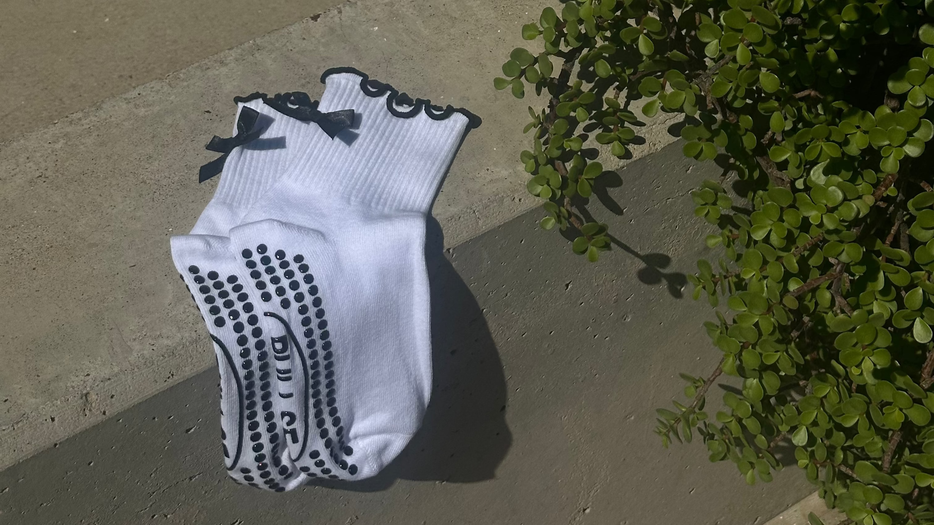 Elevate your every movement with our Black Ruffle Grip Socks, designed to blend performance and style. Whether you're flowing through Pilates, grounding in yoga, or pulsing at the barre, these socks offer the perfect combination of comfort, control, and confidence.